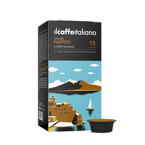 Napoli in capsule compatibili Lavazza®* A Modo Mio®* è un caffè con una grande corposità e cremosità. La tostatura, lenta e scura, dona forza a questa miscela che si contraddistingue per la sua intensità e la sua piacevole e persistente amarezza. Un espresso senza compromessi, con una crema densa e dorata e un gusto vigoroso dove spiccano note di cacao, spezie e nocciole tostate.