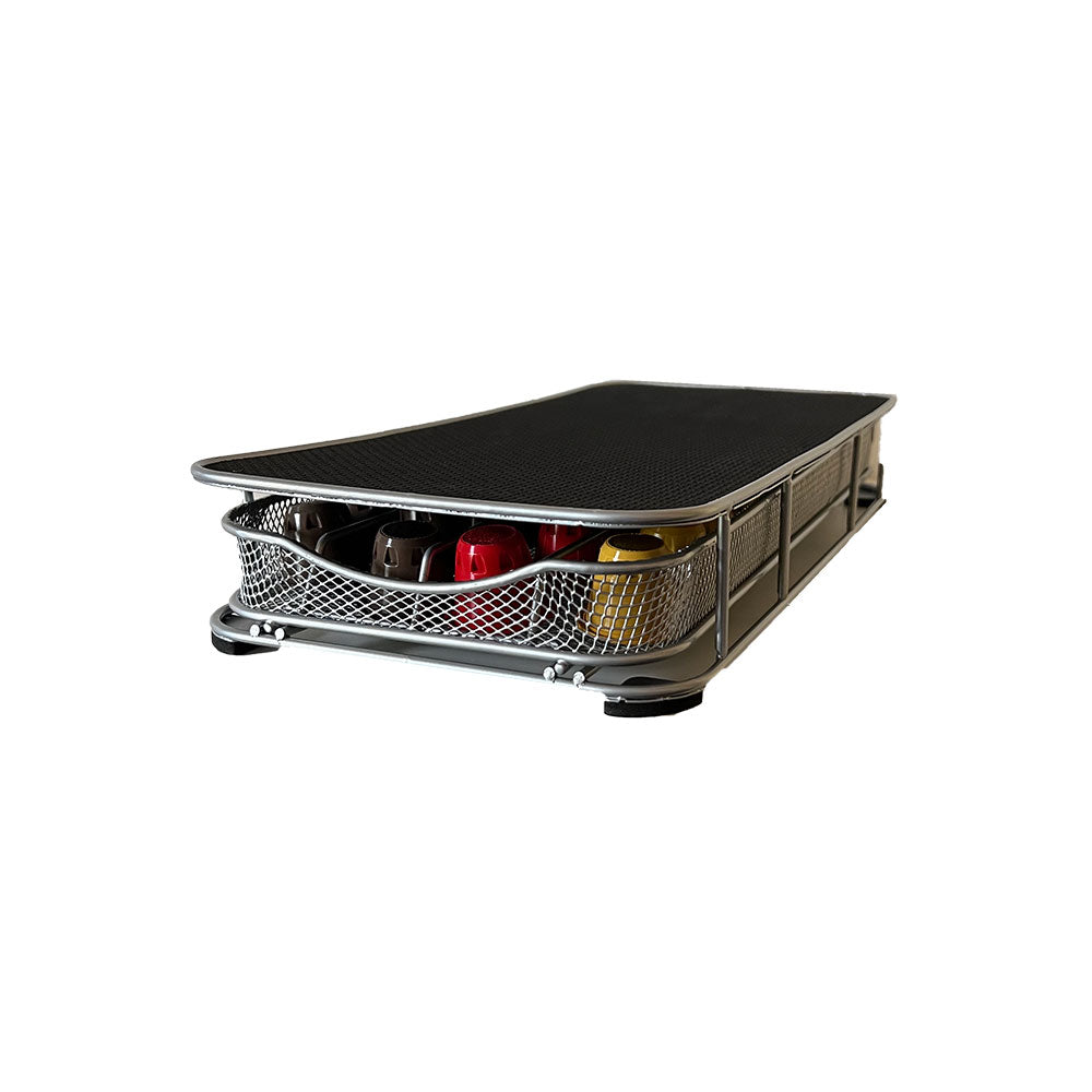 Tutto al suo posto! Basta scavare tra i cassetti della cucina per trovare capsule nascoste o dimenticate. Da oggi puoi recuperare spazio e mantenere tutto in ordine con il Contenitore Estraibile Porta Capsule. Il cassettino è dotato di piano superiore per appoggiare la macchina del caffè. Dotato di gommini antiscivolo. Si adatta perfettamente al piano della cucina oppure su mobili.