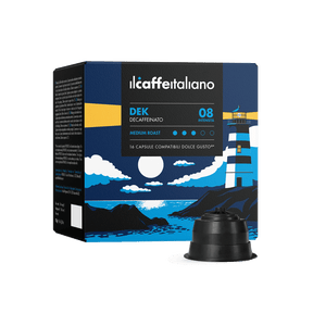 Dek in capsule compatibili Dolce Gusto®* è un decaffeinato senza compromessi. La tostatura lenta e scura dona un gusto forte e deciso dove si possono aprezzare piacevoli note di fava di cacao e nocciole tostate. Un espresso autentico, dove l'assenza di caffeina non attenua nessuna caratteristica gustativa.