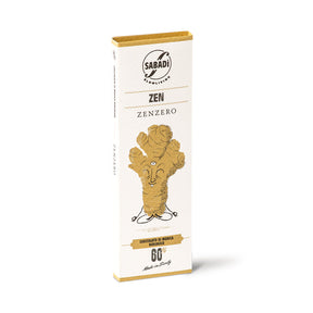 Tavoletta di Cioccolato Modicano allo zenzero biologico al 60% di cacao. Cioccolato di Modica biologico allo zenzero – Le note aromatiche del cacao Nacional trovano in ZEN un piacevole contrasto con le note speziate dello zenzero. Lo zenzero, di origine biologica viene macinato al momento, prima della lavorazione.