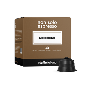 Compatibili Dolce Gusto®*, Nocciolino: per i palati che amano i sapori intensi e avvolgenti. Le capsule compatibili Nespresso®* Nocciolino producono una bevanda dal gusto unico e nuovo. Una vera e propria coccola per il palato, che unisce sapori intensi, cremosità e dolcezza. È la scelta ideale per gli amanti delle nocciole e dei dolci raffinati, che desiderano concedersi un momento di puro piacere gustativo.